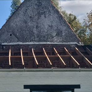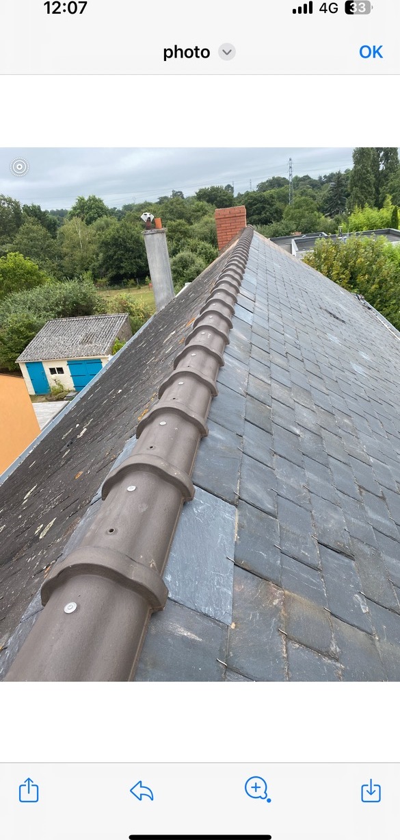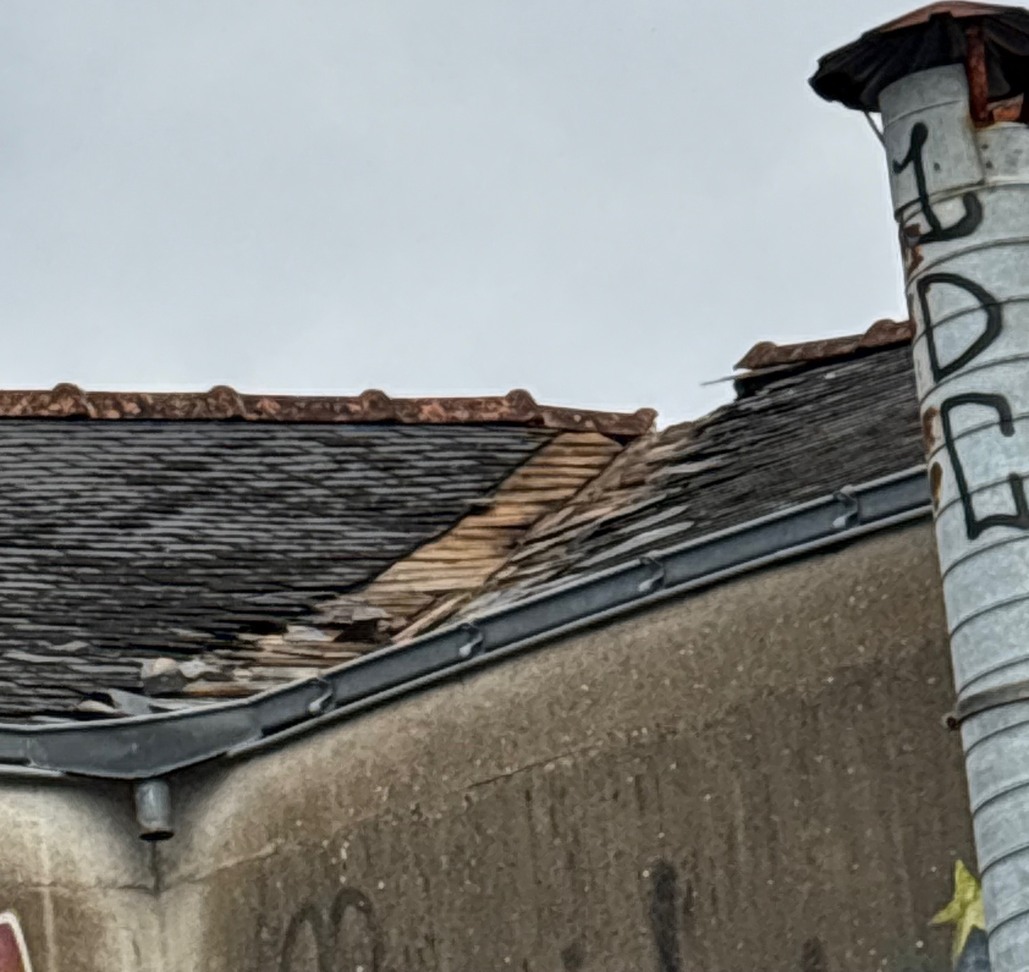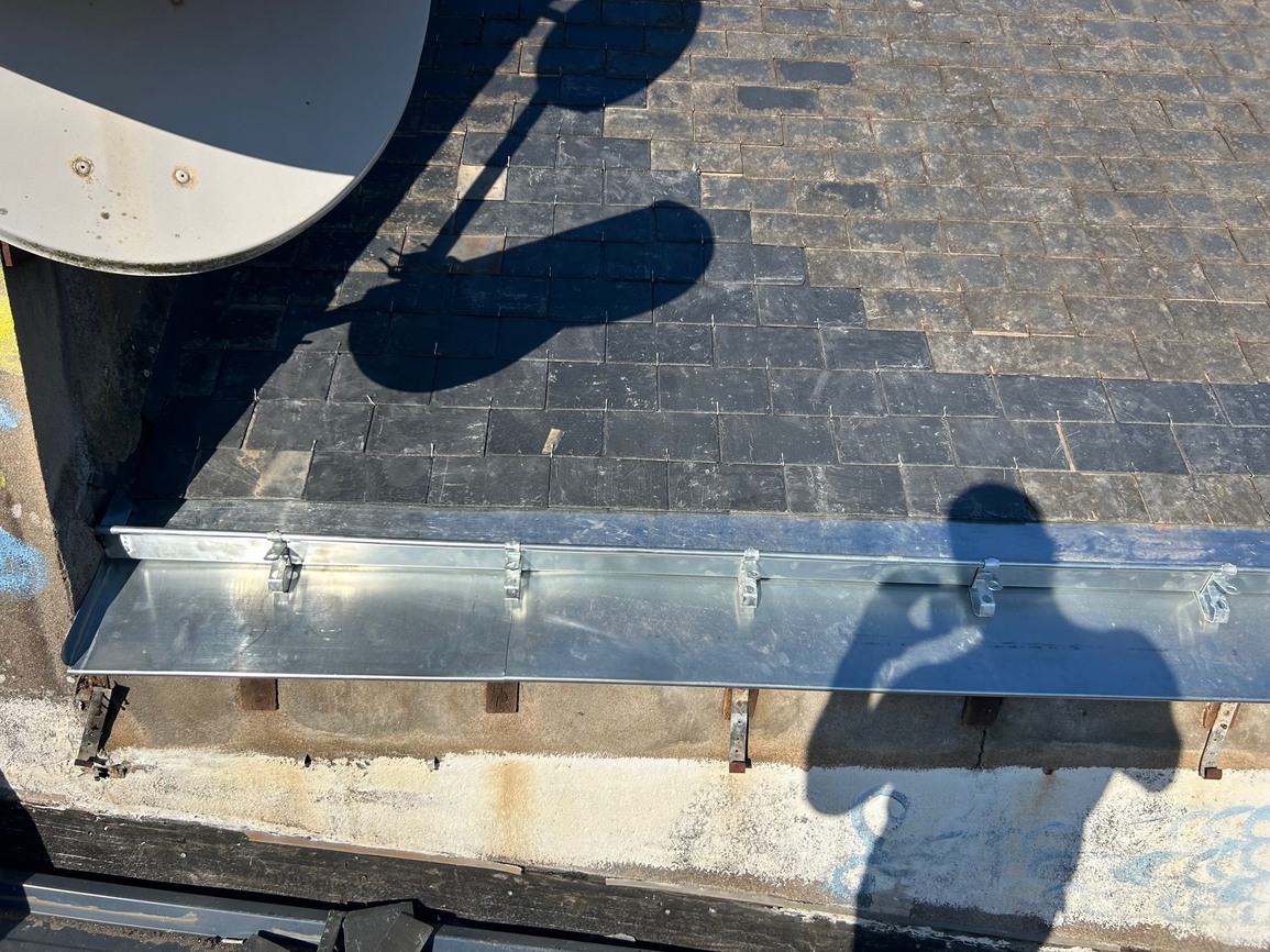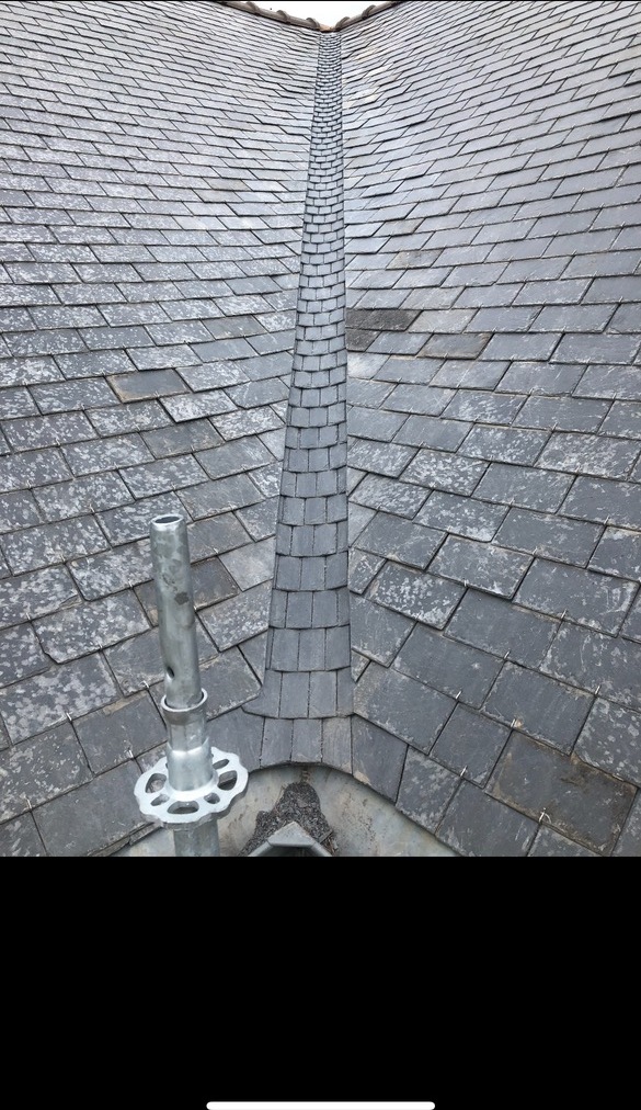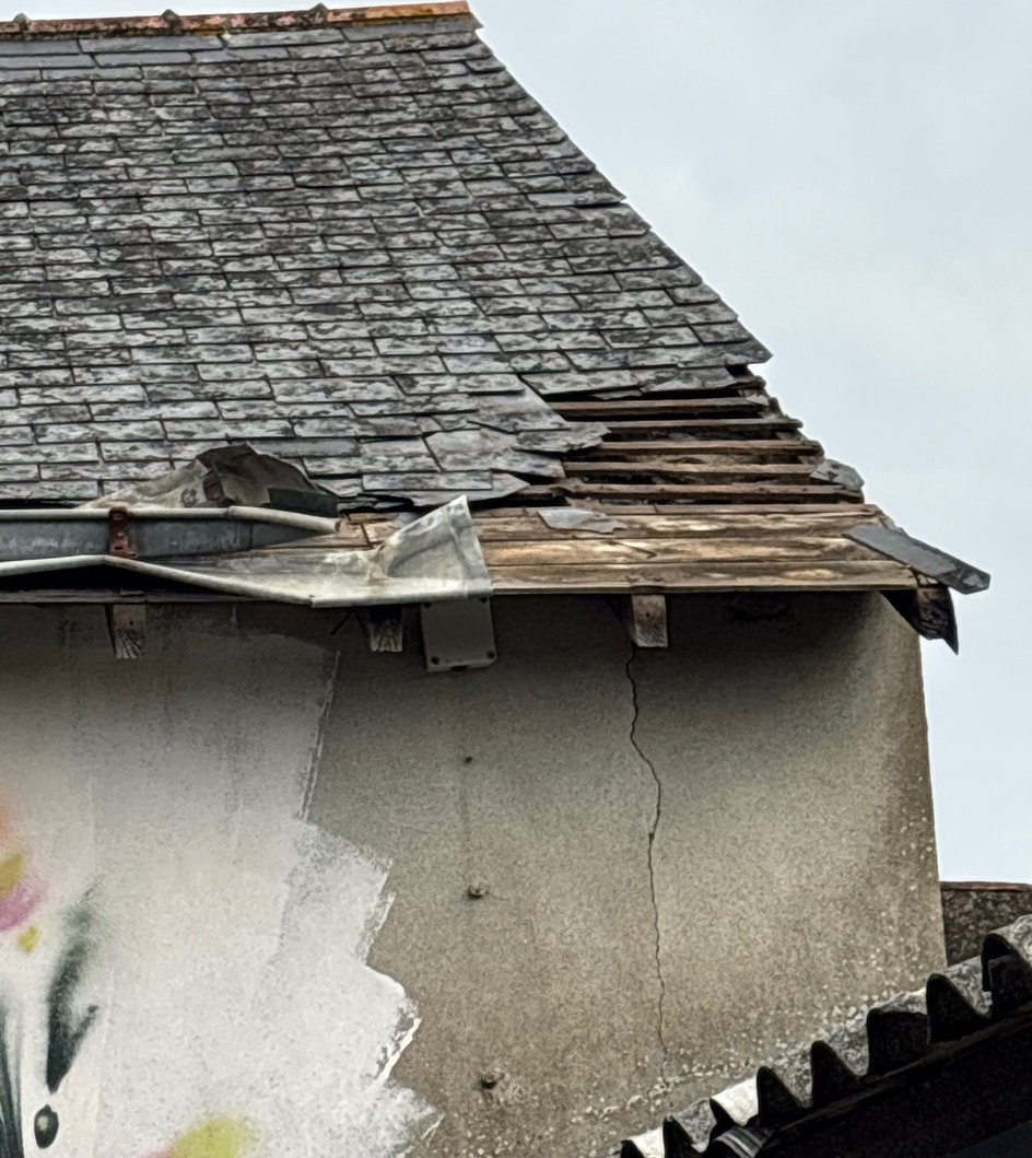 Remplacement de gouttière arrachée, changement de 400 ardoises, réparation de noue en zinc